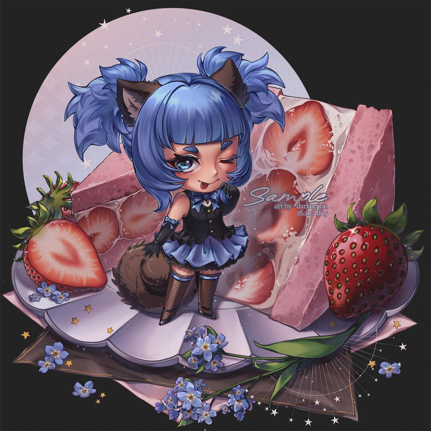 • The use as a merch (stickers / postcards / stands / sketchbooks / key rings, etc.), the publication of the image on your Patreon or other similar resource is negotiated in advance and an additional payment of 50% of the cost of the illustration is charged for this
